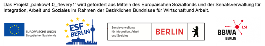 Bei unserem Projekt „Pankow 4.0_4every1“ handelt es sich um ein Mikroprojekt des Förderinstruments Lokal-Sozial-Innovativ (LSI) der Förderperiode 2021-2027 des Europäischen Sozialfonds Plus (ESF+) und der für Arbeit zuständigen Senatsverwaltung. Fokus ist hier die lokale Förderung sozialer Integration und Innovation. Die Förderung unseres Projektes dient der sozialen Integration von Menschen, die von Armut und sozialer Ausgrenzung und Benachteiligung bedroht sind. Dabei sollen spezifische Herausforderungen berücksichtigt und Handlungsmöglichkeiten in den Berliner Bezirken erschlossen und genutzt werden.